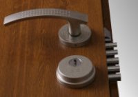 Ponadto w wyposażeniu standardowym drzwi zastosowano rozetę antywłamaniową atestowaną w klasie 4, estetycznie wykonany szyld dzielony z kompletem klamek i tarczek oraz wkładkę dolną w klasie B i górną z pokrętłem w klasie A.